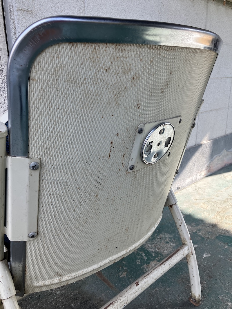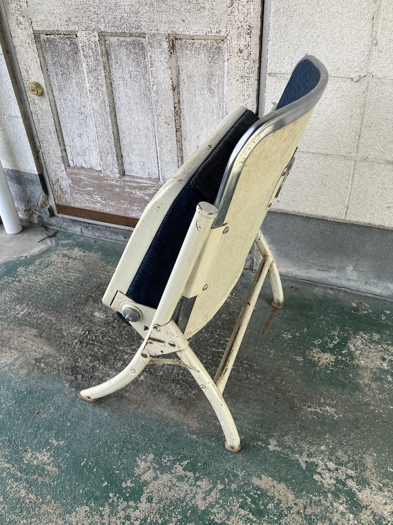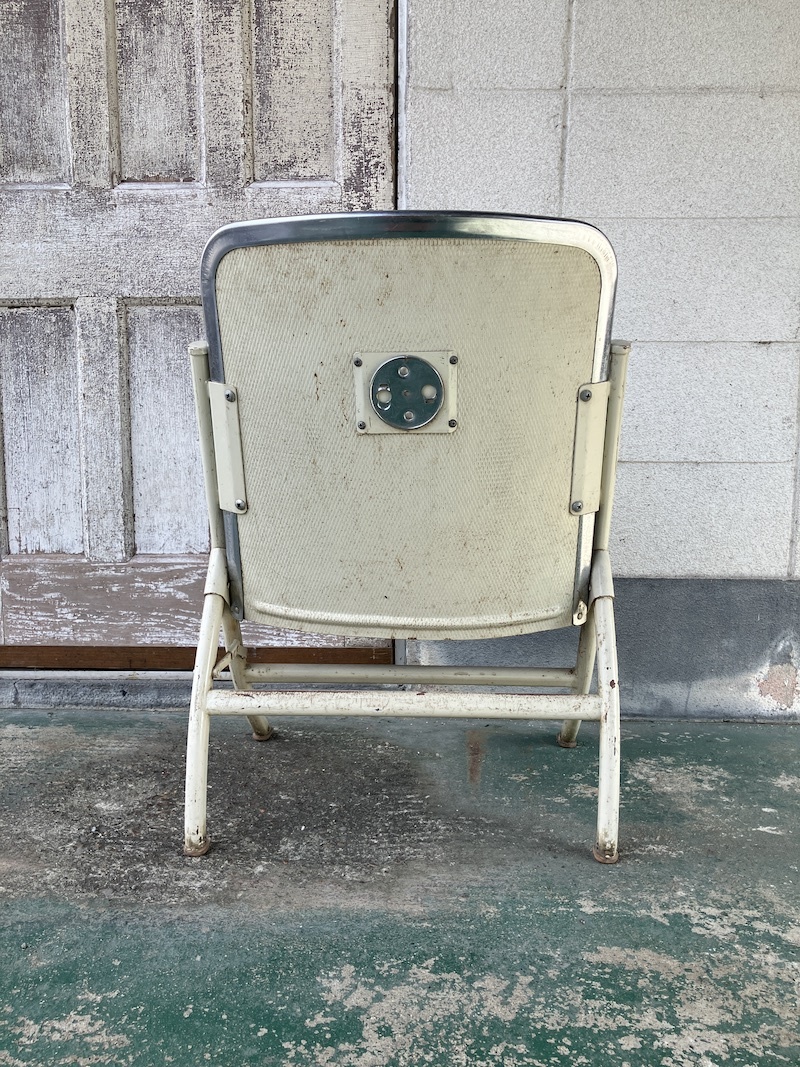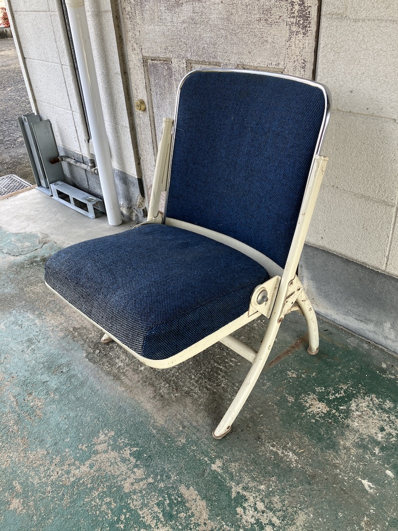ビンテージのメタルファブリックフォールディングチェアーです。