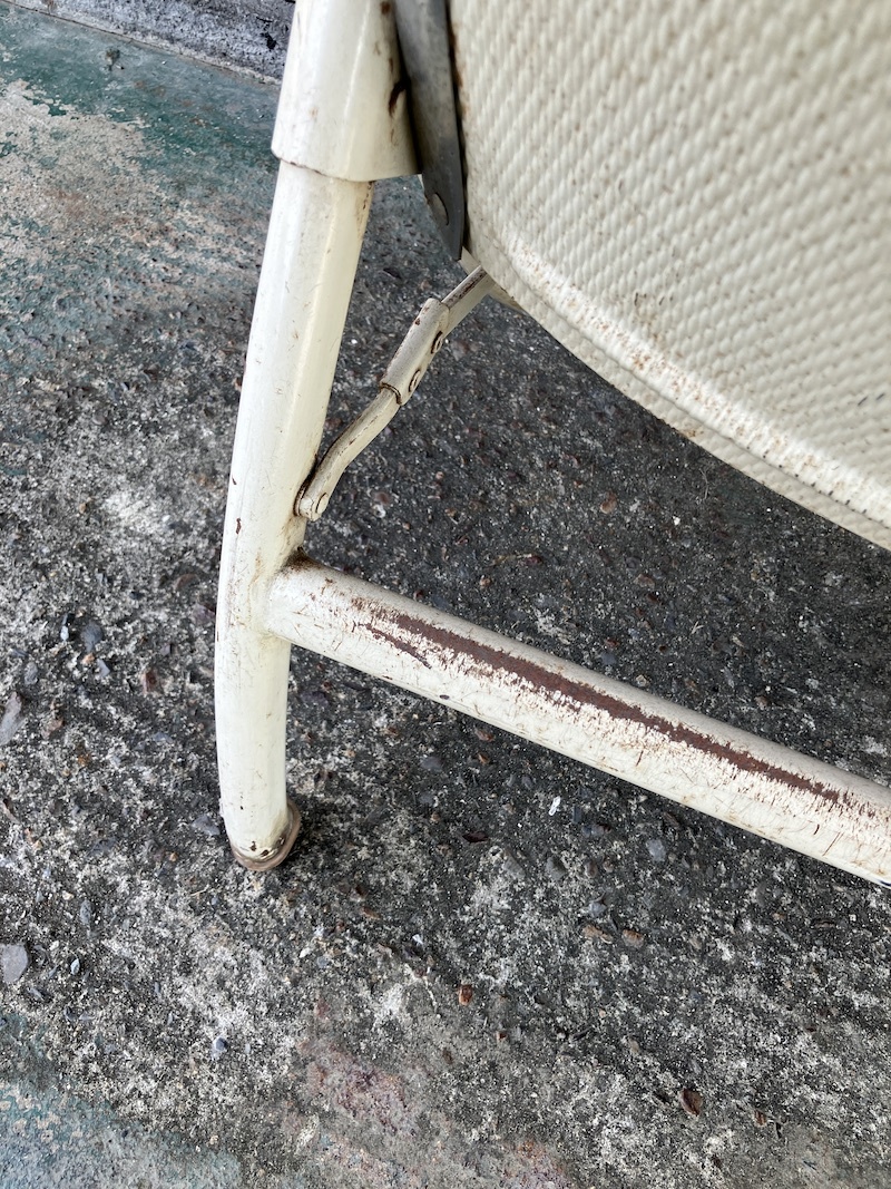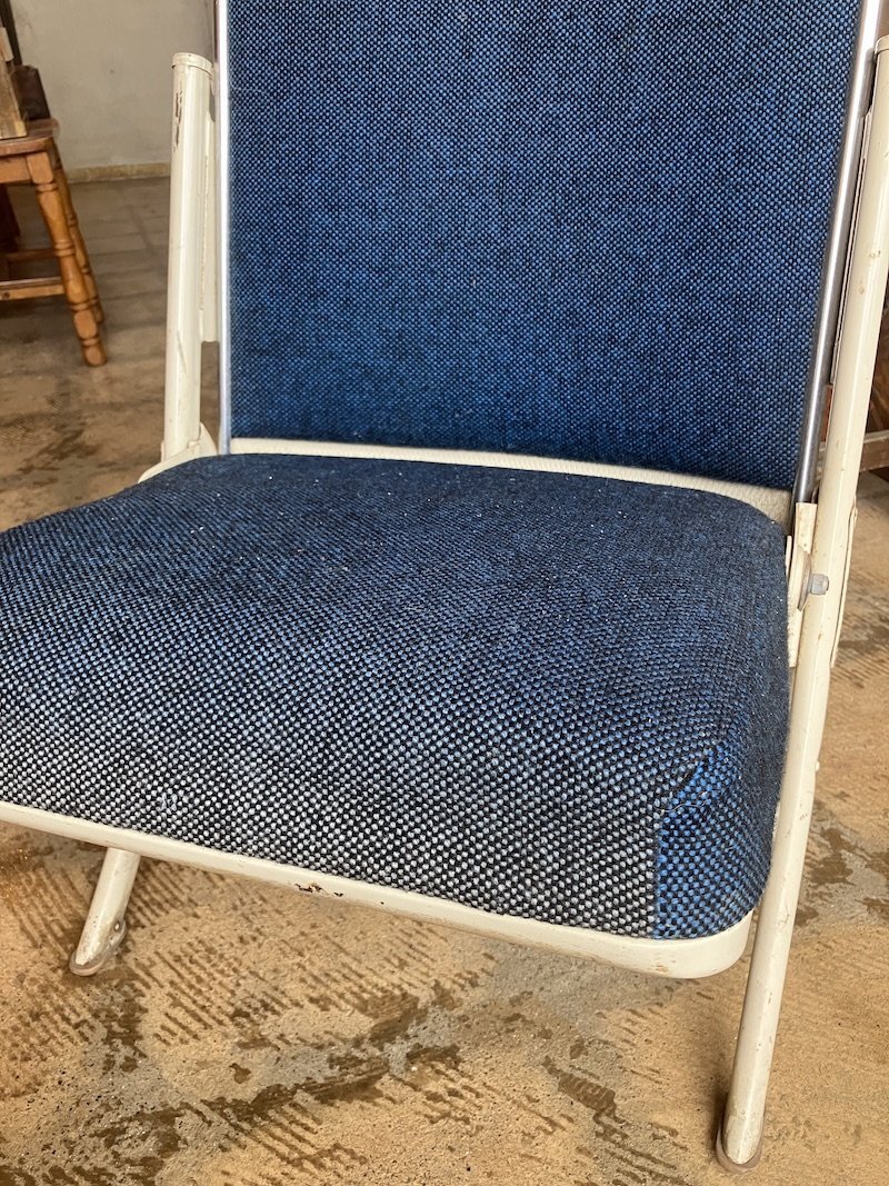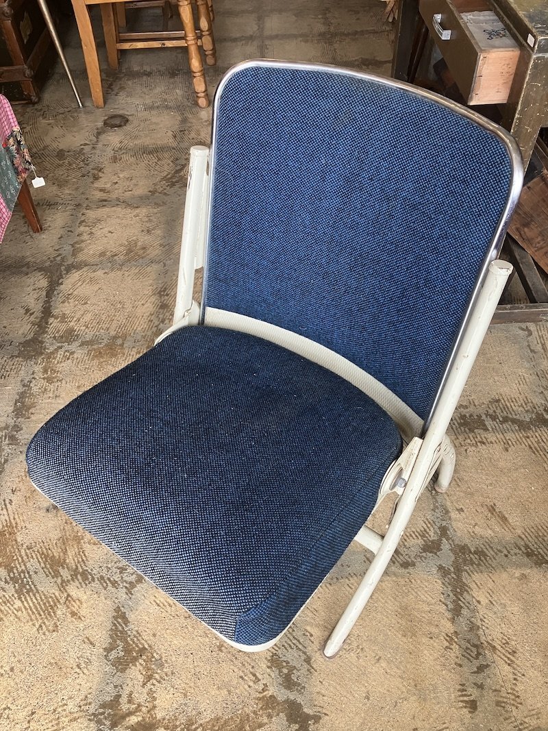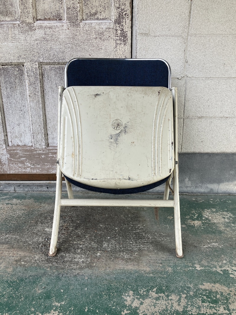 ビンテージのメタルファブリックフォールディングチェアーです。
