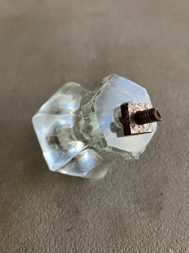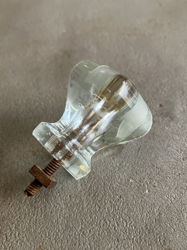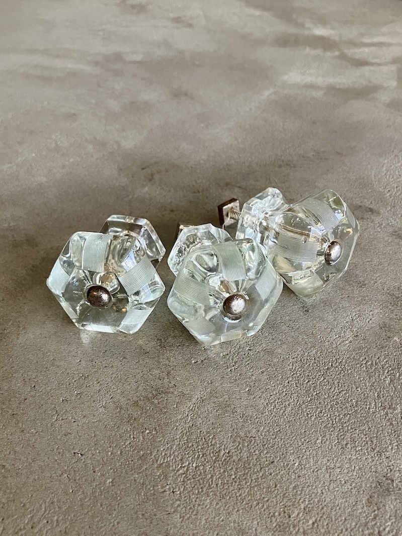 1910'S 20'S アーリーセンチュリー ガラス取手 大型 リブタイプ キャビネットノブ ドロワープル クリアガラス アイアン 3pcs set アンティーク ビンテージ [ap-184]