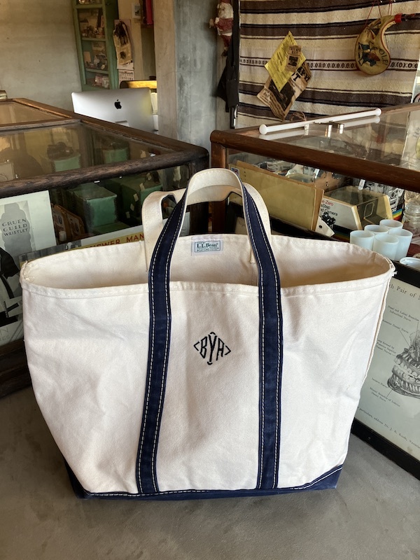 1980’s 90'S L.L.BEAN Vintage Boat and Tote モノグラム ボートアンドトート エルエルビーン L.L.ビーン ビーントート ラージ LARGE アメリカ製 MADE IN USA グッドコンディション NAVY 帆布 ビンテージ [vo-386]