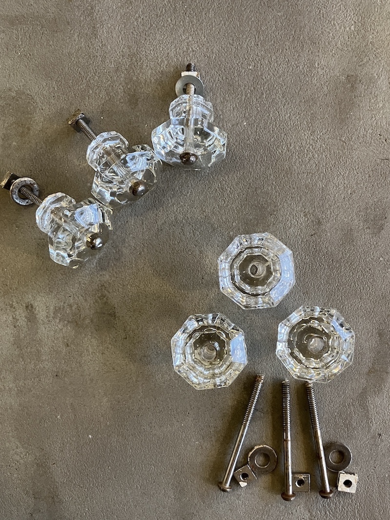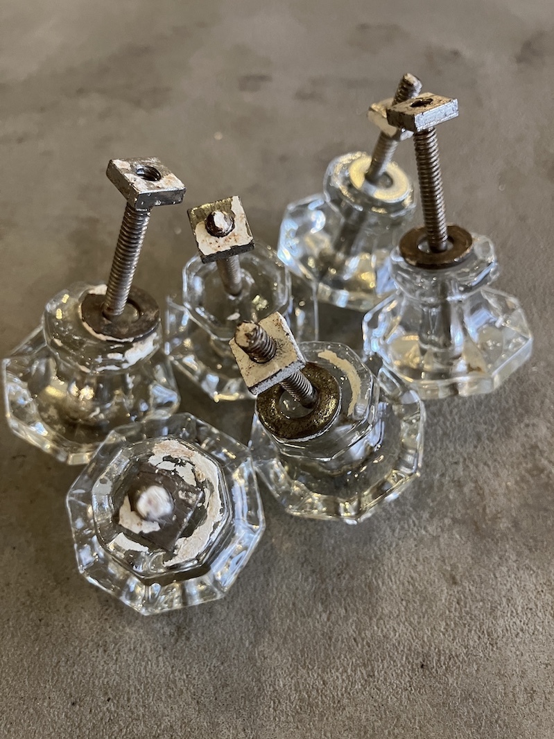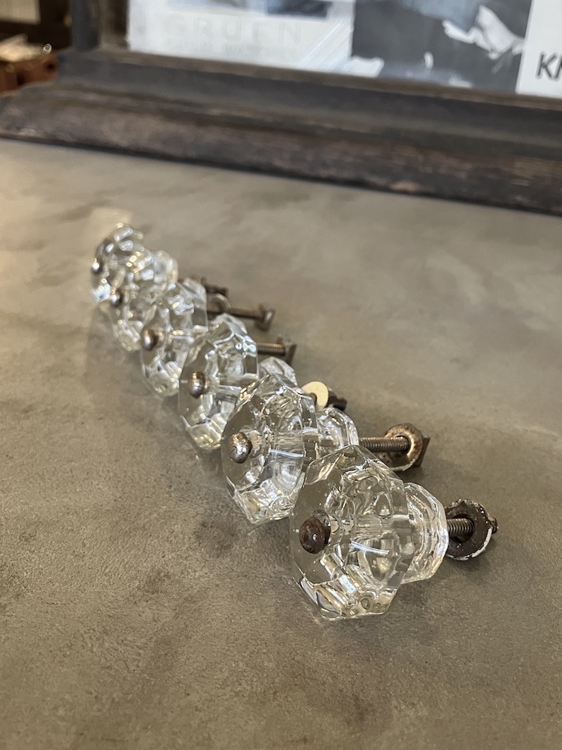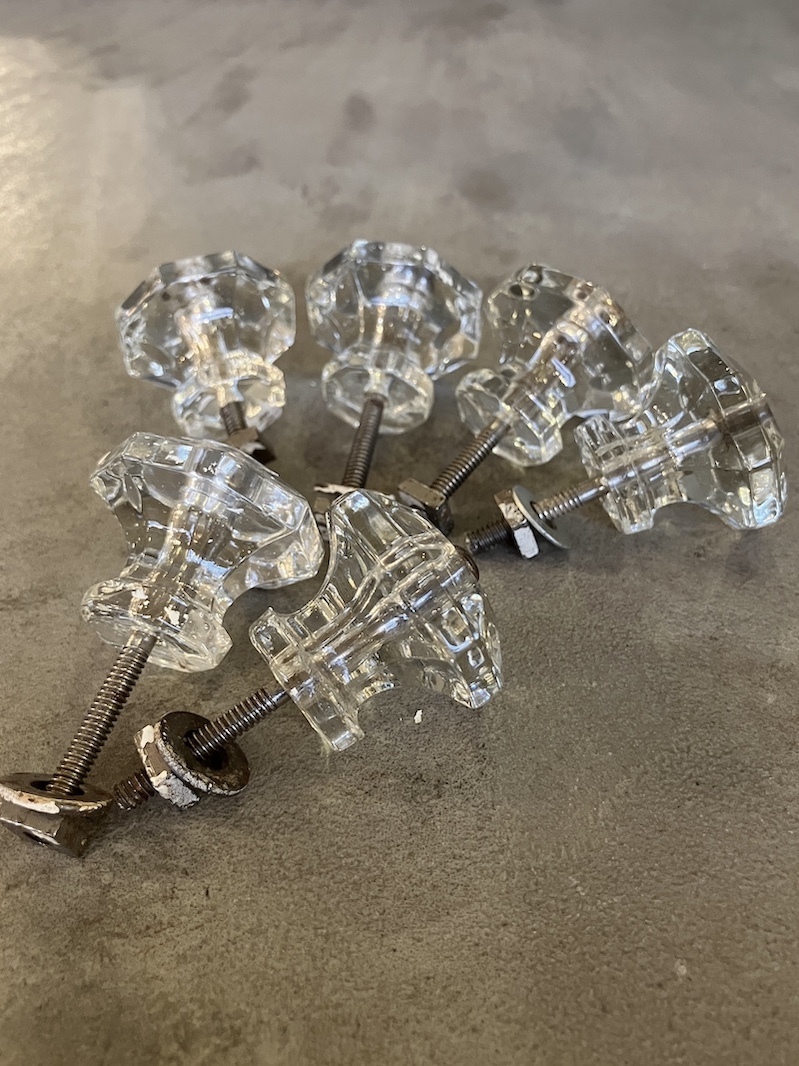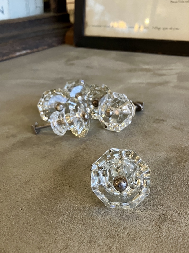 1910'S 20'S アーリーセンチュリー ガラス取手 オクタゴン 八角形 中型 キャビネットノブ ドロワープル クリアガラス アイアン バラ売り アンティーク ビンテージ [ap-183]