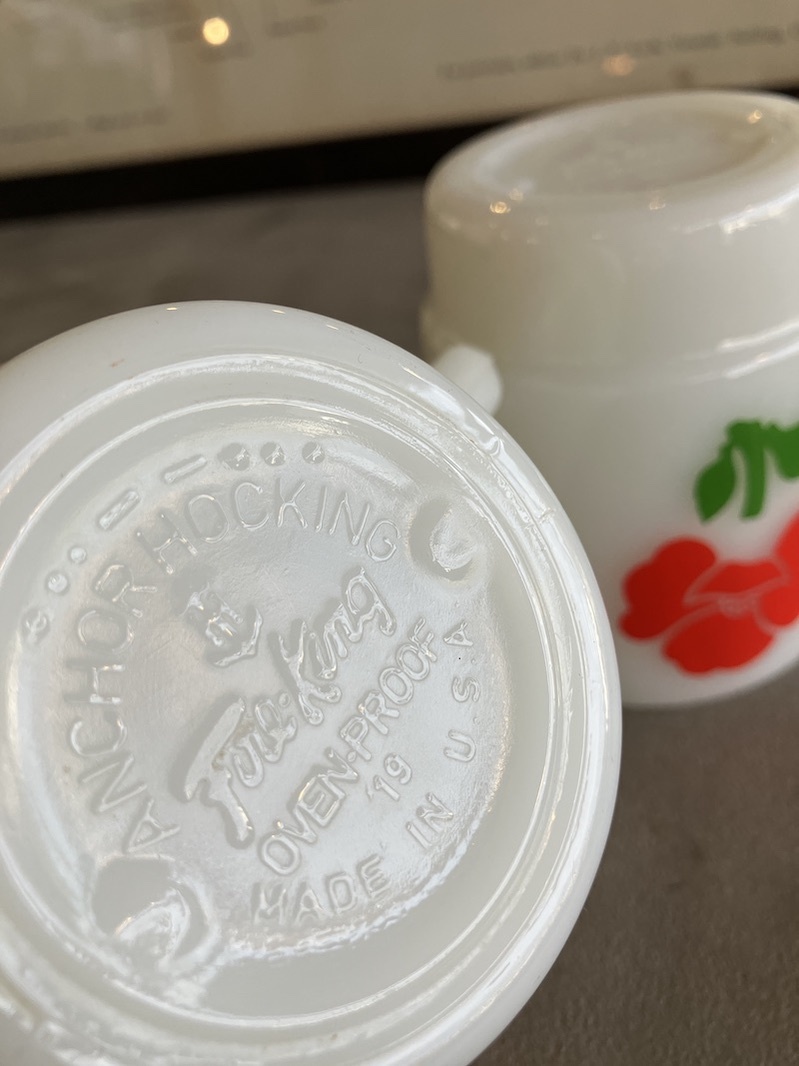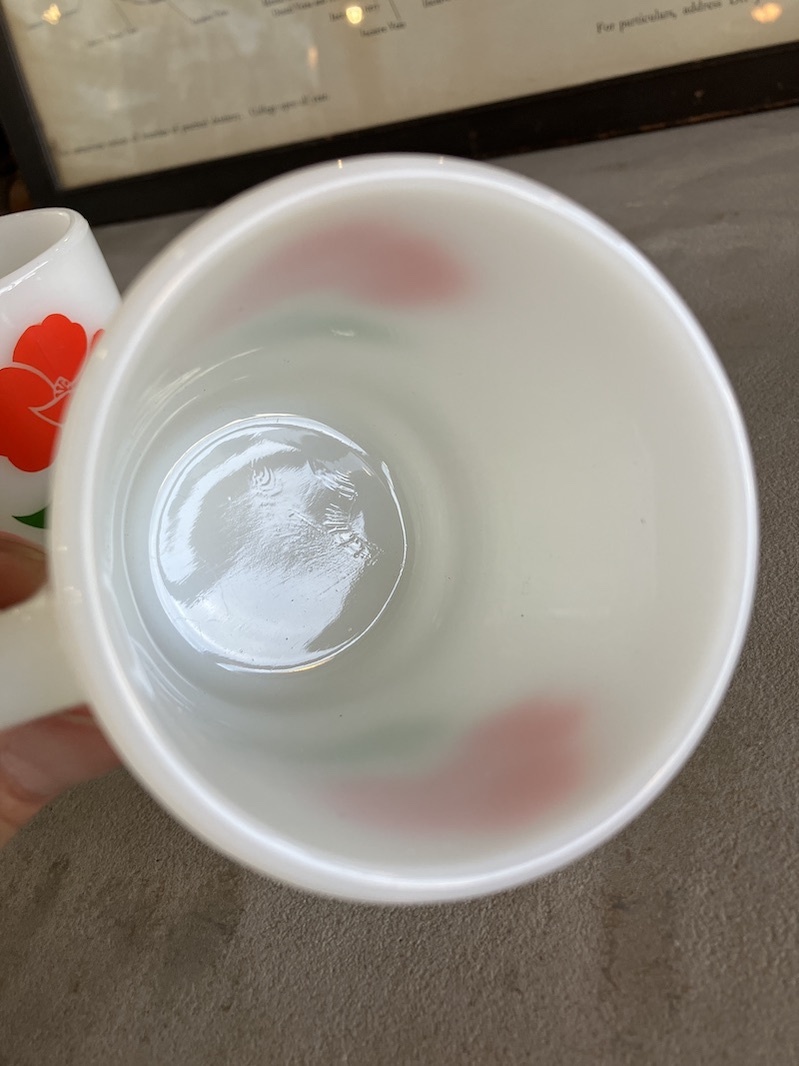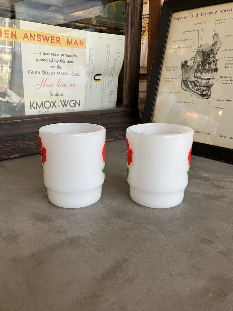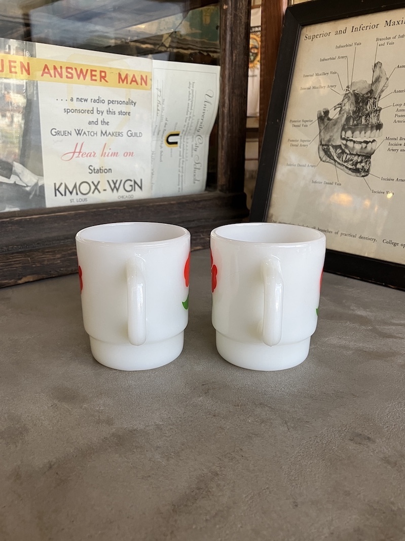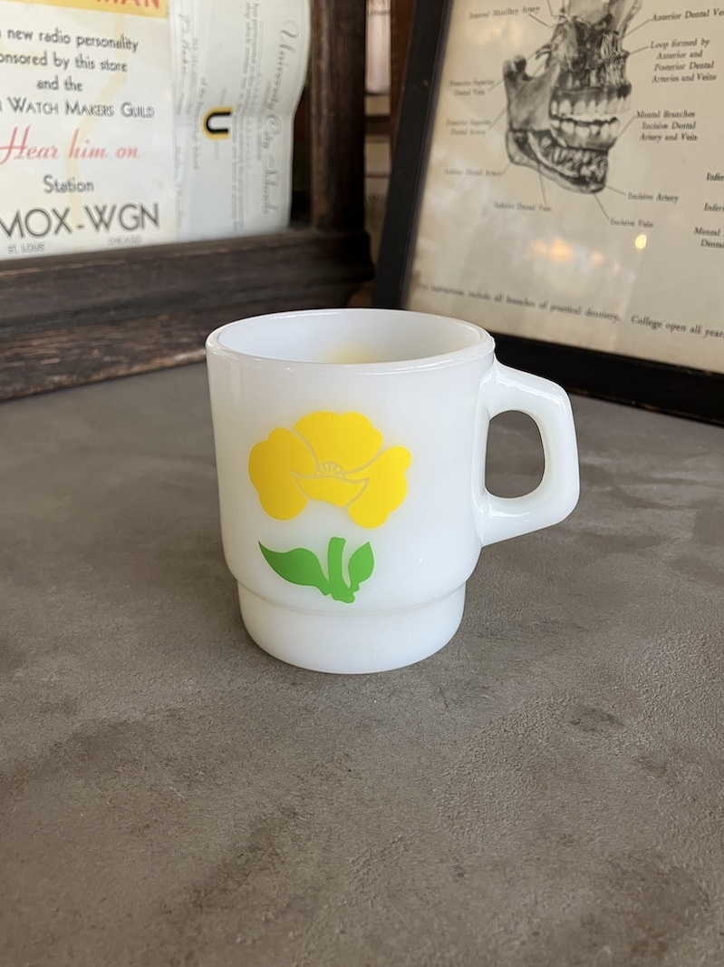 1960'S 70'S Fire-King スタッキングマグ FOXY FLOWERS フォクシーフラワーズ ポピー アンカーホッキング ファイヤーキング レッド&イエロー ミントコンディション アンティーク ビンテージ [gw-553]
